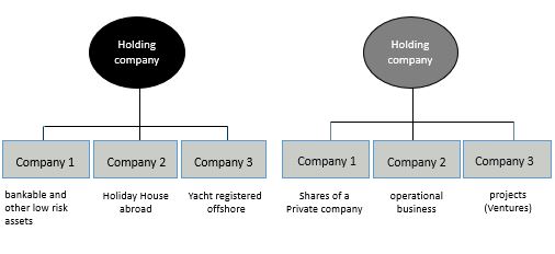Dalam hubungan internasional ada banyak jenis perusahaan induk. Mereka dapat digunakan untuk memegang partisipasi di perusahaan, pesawat terbang, kapal atau bahkan koleksi seni. Perusahaan induk ini berwujud dalam berbagai bentuk. Pilihan lokasi untuk perusahaan induk tertentu perlu diperiksa dengan cermat. Faktor-faktor seperti distribusi atau perjanjian pajak berganda yang bersangkutan adalah patokan utama saat memilih otoritas yang paling sesuai. Lokasi terkenal untuk perusahaan induk termasuk Swiss, Singapura, Siprus, Luksemburg, dan Inggris. Selain fakta bahwa otoritas ini memiliki reputasi yang sempurna, mereka dipilih untuk mendapatkan keuntungan dari perjanjian pajak berganda yang berlaku.